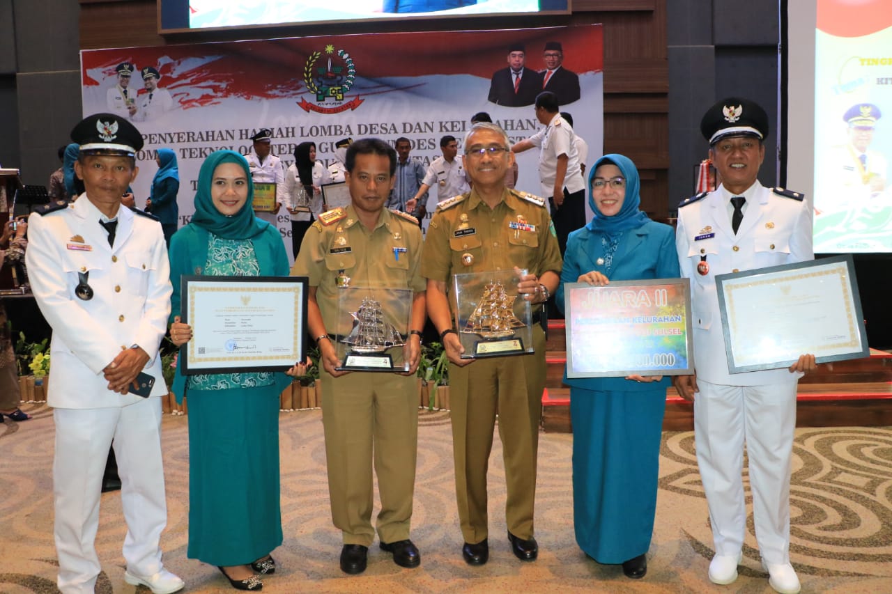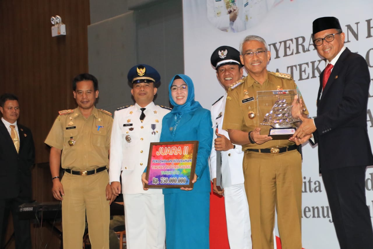 Penghargaan diserahkan langsung oleh Gubernur Sulsel, Prof. Nurdin Abdullah disaksikan sejumlah kepala daerah se – Sulsel dan unsur Forkopimda Sulsel pada Ajang Lomba Desa dan Kelurahan, Lomba Teknologi Tepat Guna, Bumdes Bereprestasi dan Posyandu Berprestasi Tingkat Provinsi Sulawesi Selatan Tahun 2019 di Hotel Four Point by Sheraton, Makassar, Rabu (11/12/2019).