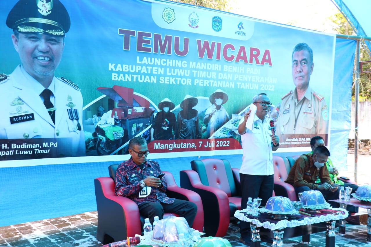 Lutim,warta.luwutimurkab.go.id- Bupati Luwu Timur, H. Budiman menghadiri Temu Wicara sekaligus Melaunching Mandiri Benih Padi Kabupaten Luwu Timur dan Menyerahkan sejumlah Bantuan Sektor Pertanian yang berlangsung di Instalasi Kebun Benih (IKB) di Desa Teromu Kecamatan Mangkutana, Kamis (07/07/2022).