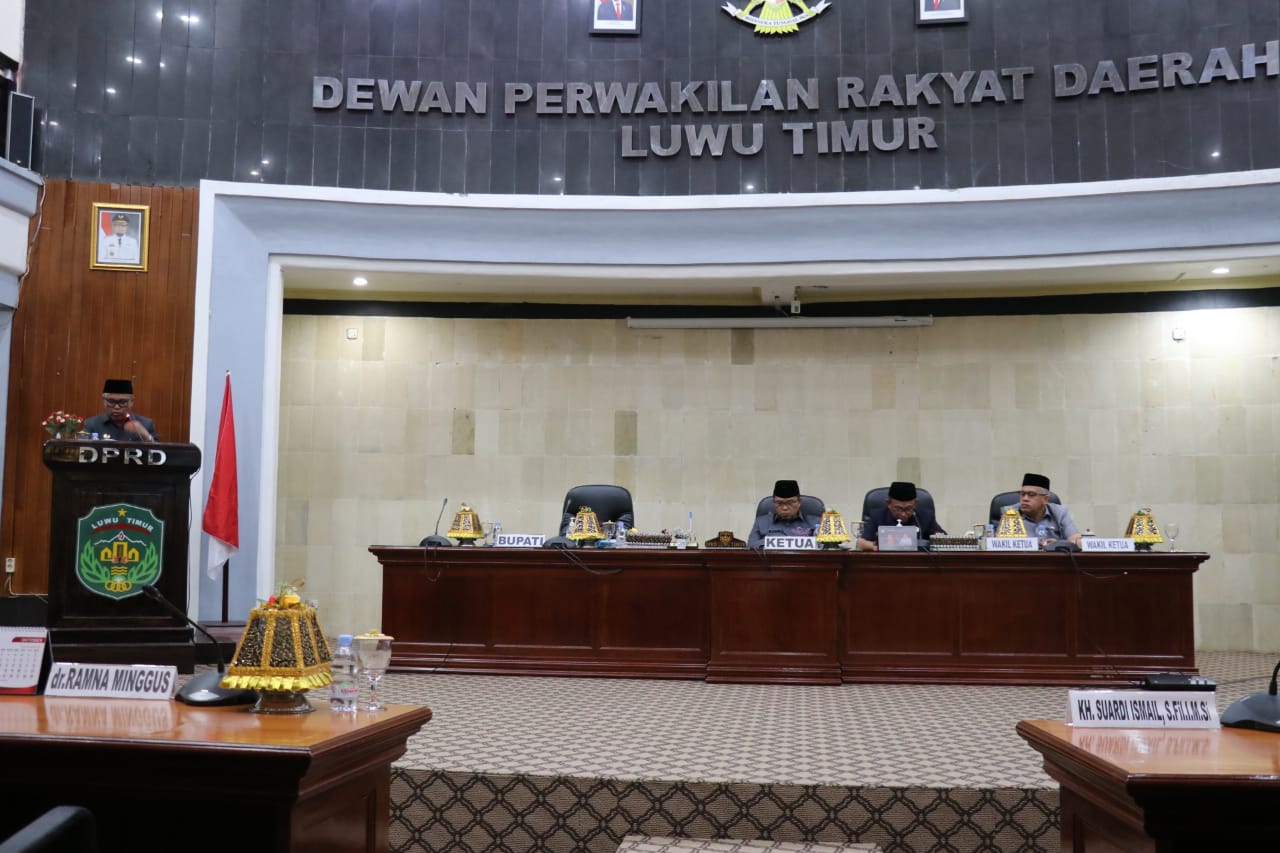 Jawaban tersebut disampaikan Bupati Luwu Timur pada Rapat Paripurna yang dipimpin oleh Ketua DPRD Lutim, Aripin, didampingi Wakil Ketua I dan II, HM. Siddiq BM. dan H. Usman Sadik, Senin (10/10/2022).