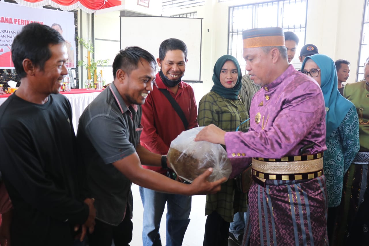 Lutim,warta.luwutimurkab.go.id- Bupati Luwu Timur, H. Budiman menyerahkan secara simbolis Bantuan Sarana Perikanan kepada Kelompok Nelayan, Pembudidaya Ikan, dan Pengolah Hasil Perikanan, di Gedung Pertemuan Kecamatan Wotu, Senin (12/12/2022).
