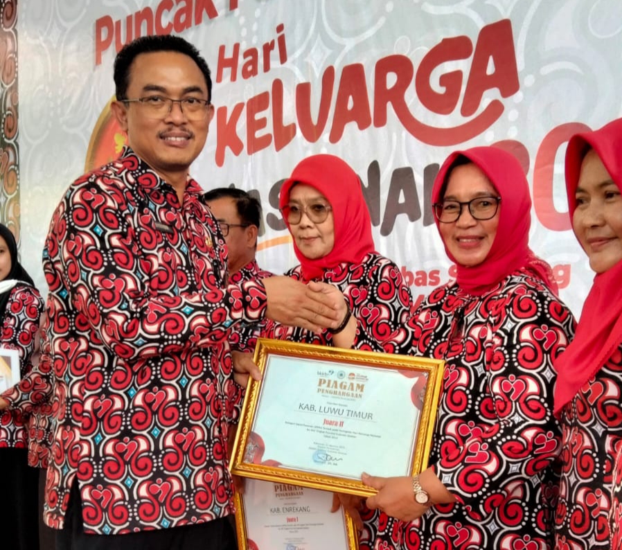 Penghargaan tersebut diserahkan langsung oleh Kepala Perwakilan BKKBN Provinsi Sulsel, Shodiqin, SH. MM, yang diterima Kepala Dinas Pengendalian Penduduk dan Keluarga Berencana (DP2KB) Kabupaten Luwu Timur, Hj. Puspawati Husler.