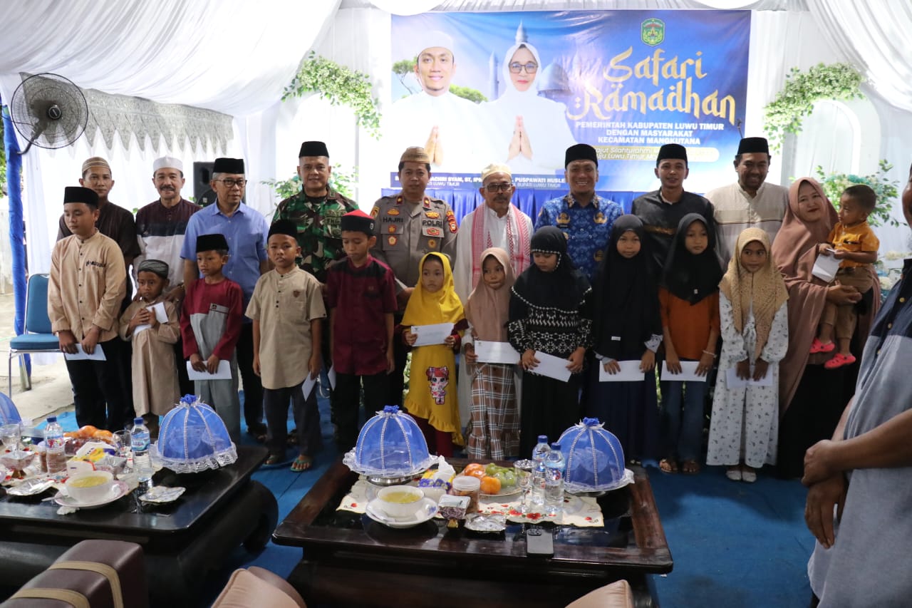 Safari Ramadhan diawali dengan penyerahan bantuan tali asih kepada anak yatim dari Baznas Lutim, yang langsung diserahkan oleh Bupati Irwan.