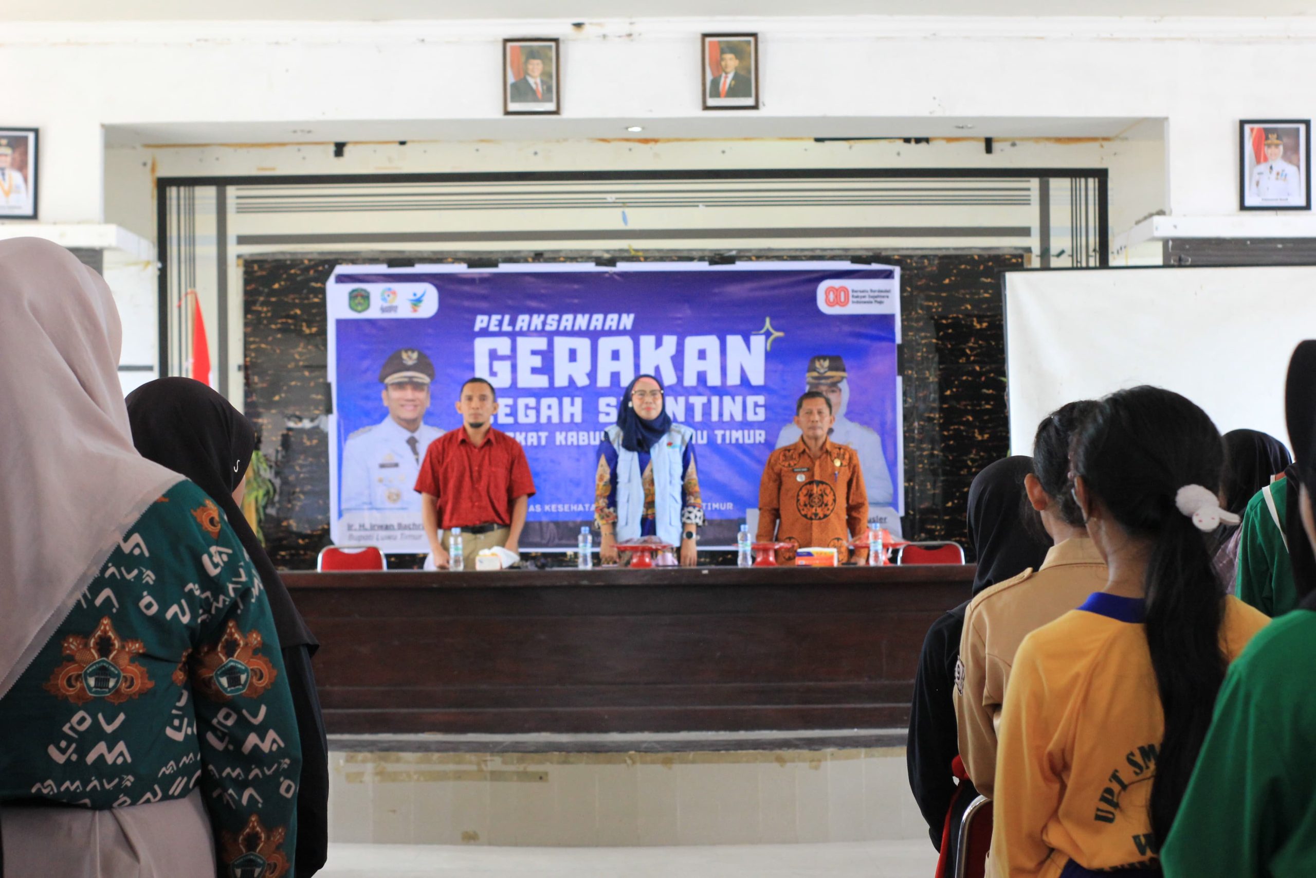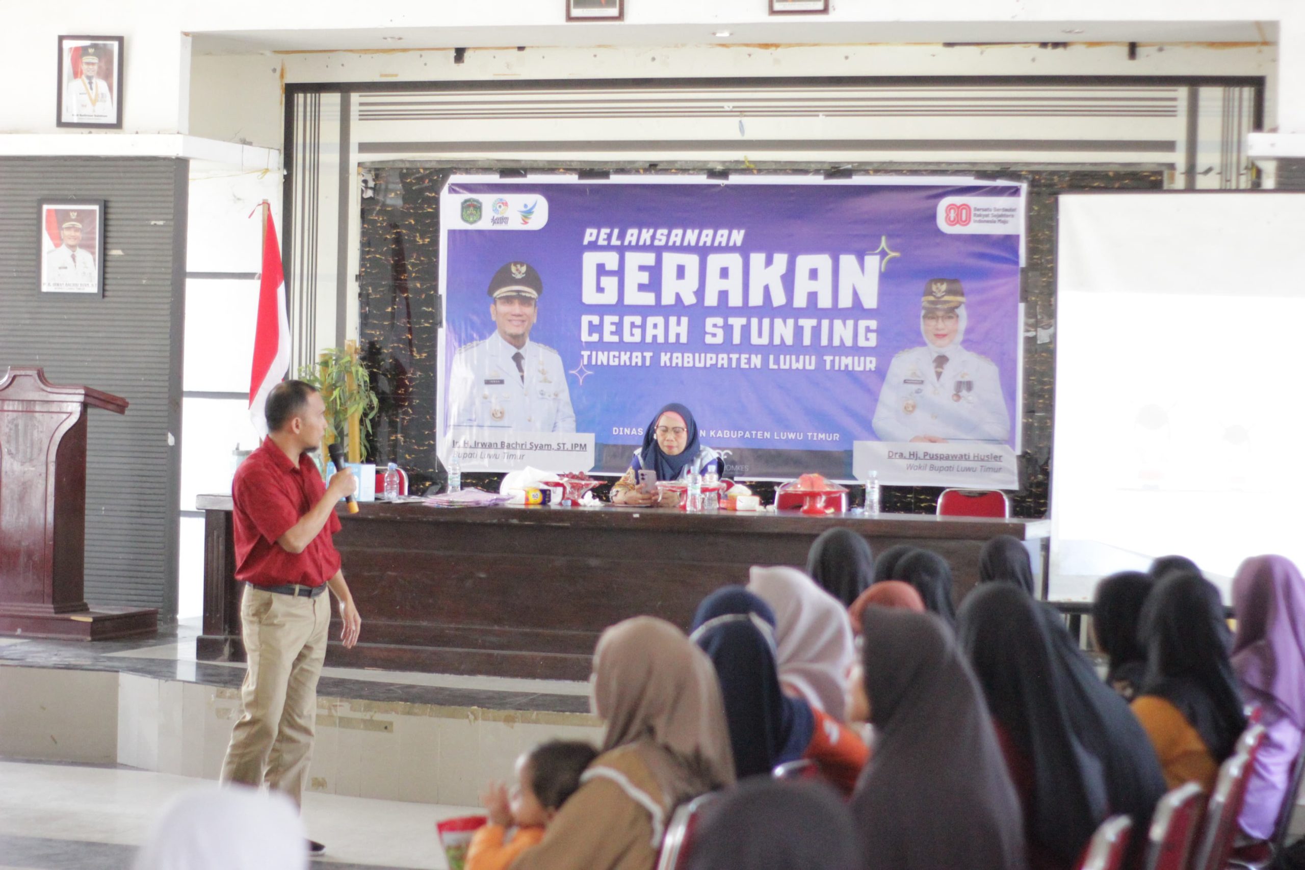 Kegiatan ini secara resmi dibuka oleh Sekretaris Dinas Kesehatan Kabupaten Luwu Timur, dr. Helmy Kahar. Dalam sambutannya, dr. Helmy menekankan pentingnya pencegahan stunting melalui pendekatan edukatif yang menyasar kelompok paling rentan, yakni ibu hamil, ibu bayi balita, dan remaja putri.