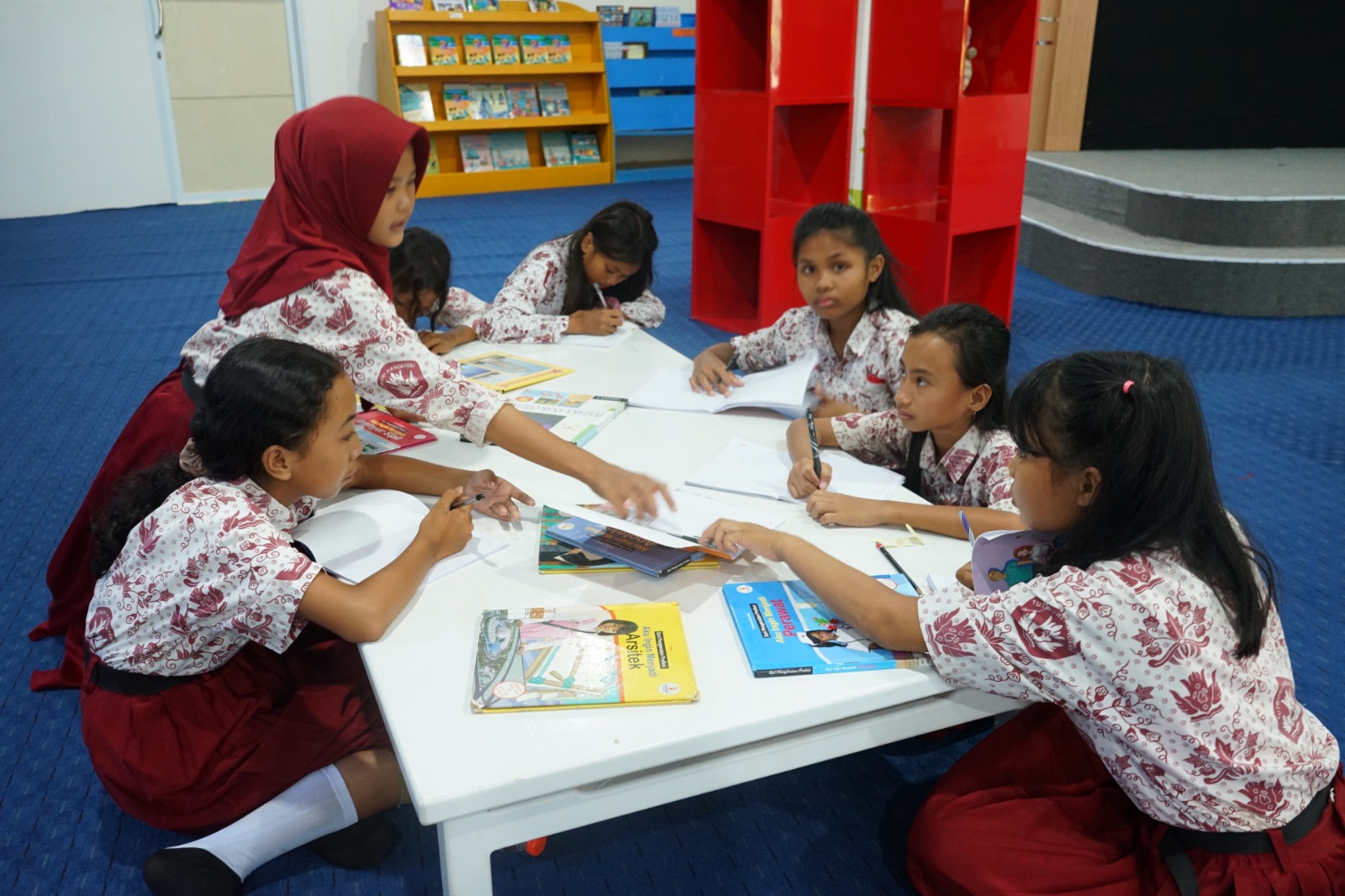 Dalam kunjungan tersebut, siswa diajak untuk mengenal lebih dekat tentang fasilitas dan pelayanan perpustakaan, kegiatan membaca bersama, mereview buku, mengisi jurnal membaca, hingga menonton film edukasi.