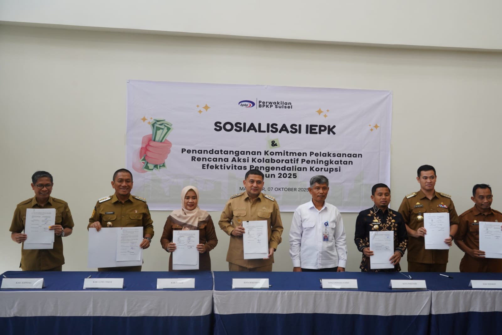 Penandatangan tersebut berlangsung pada acara sosialisasi Indeks Efektivitas Pengendalian Korupsi (IEPK) yang diselenggarakan di Ruang Diklat Perwakilan Badan Pengawasan Keuangan dan Pembangunan (BPKP) Sulawesi Selatan, Selasa (07/10/2025).
