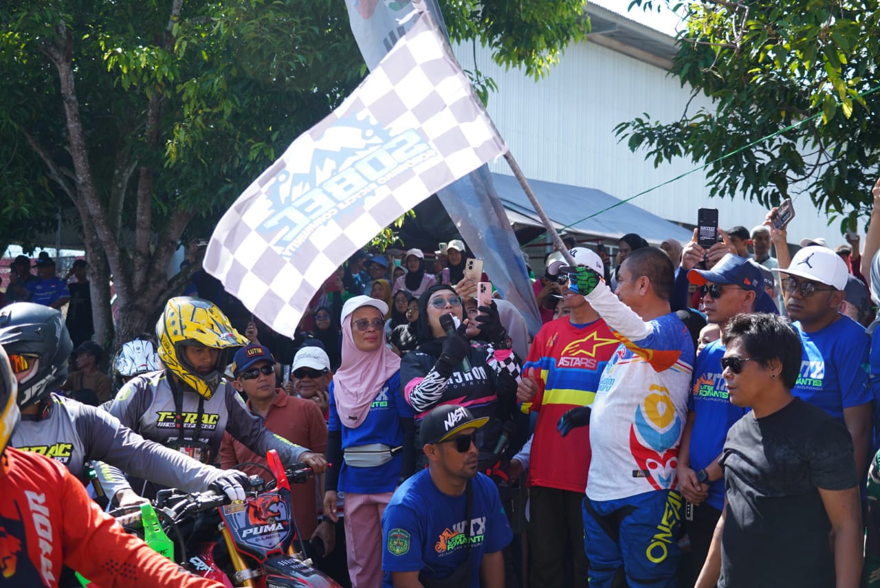 Bupati Luwu Timur, Irwan Bachri Syam, yang mengenakan pakaian khas riders motor trail, tidak hanya hadir untuk melepas peserta, tetapi juga ikut langsung menjelajahi rute alam yang menantang di Kecamatan Wasuponda, Sabtu (11/10/2025).