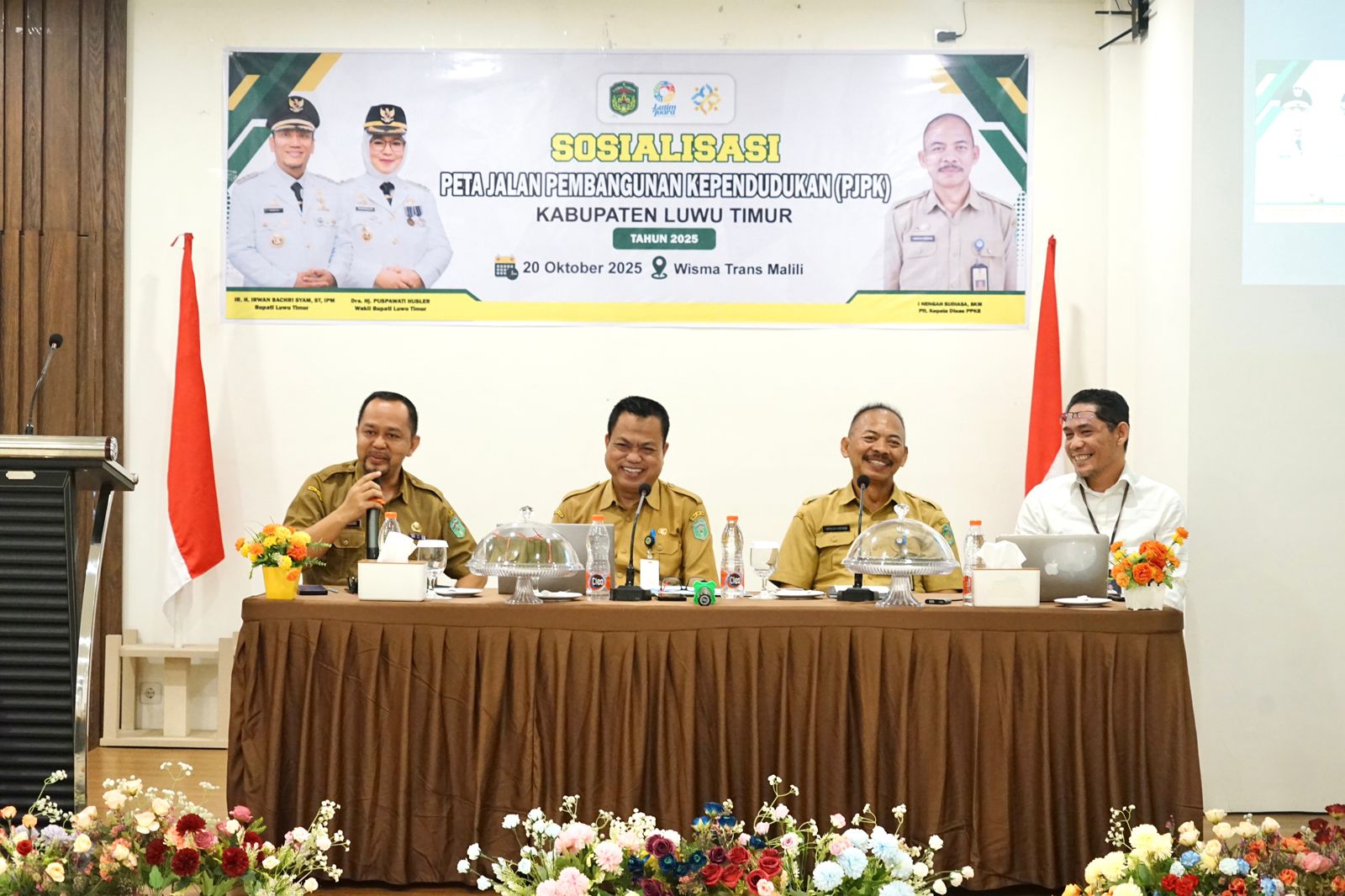 Sekretaris Bapperida Luwu Timur, Dr. Syaifullah, dan perwakilan BKKBN Provinsi Sulsel, Dr. Irvan Roberto hadir sebagai narasumber, yang dimoderatori oleh Kepala Dalduk DPPKB, Andi Tulleng, serta peserta dari beberapa OPD terkait dan para Camat.