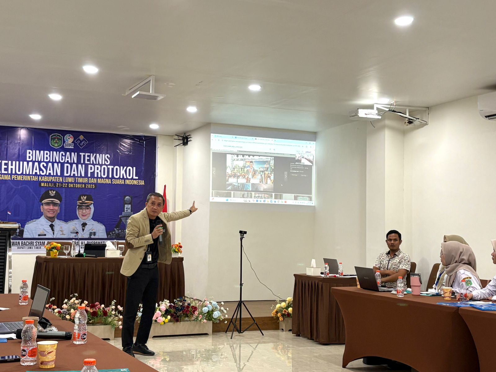 Lutim,warta.luwutimurkab.go.id- Bimtek Kehumasan dan Protokol yang dilaksanakan Pemerintahan Kabupaten Luwu Timur yang berlangsung di Wisma Trans Malili, memasuki hari kedua dengan berfokus di bidang Keprotokoleran, Rabu (22/10/2025).