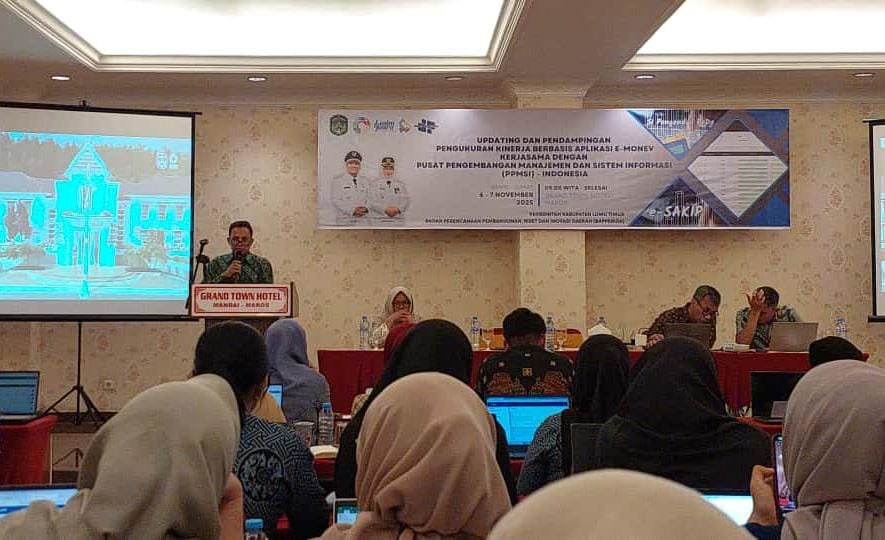 Lutim,warta.luwutimurkab.go.id- Badan Perencanaan Pembangunan, Riset, dan Inovasi Daerah (BAPPERIDA) Kabupaten Luwu Timur menggelar kegiatan Updating dan Pendampingan Pengukuran Kinerja Berbasis Aplikasi e-Monev yang bekerja sama dengan Pusat Pengembangan Sistem Informasi dan Manajemen (PPMSI) Indonesia, Maros (6/11/2025)