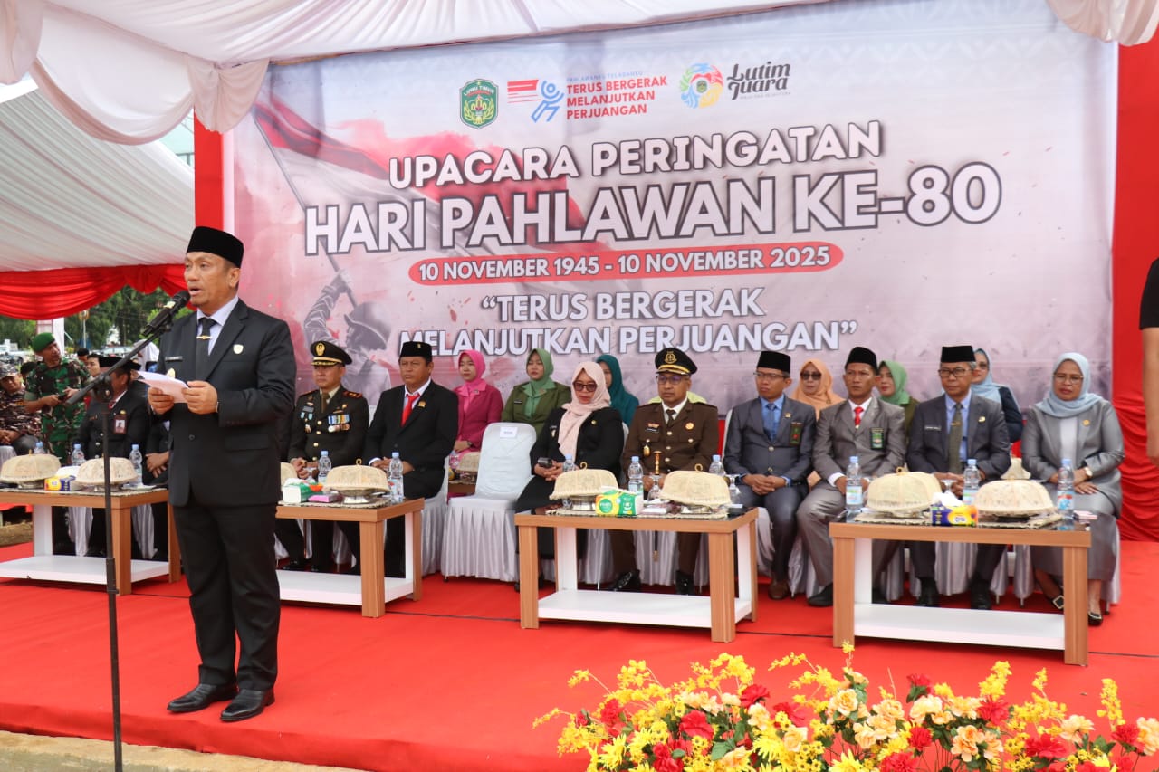 Khusus di Kabupaten Luwu Timur, upacara peringatan hari bersejarah tersebut berlangsung di Lapangan Pendidikan Malili, yang dipimpin oleh Bupati Irwan Bachri Syam, Senin (10/11/2025).