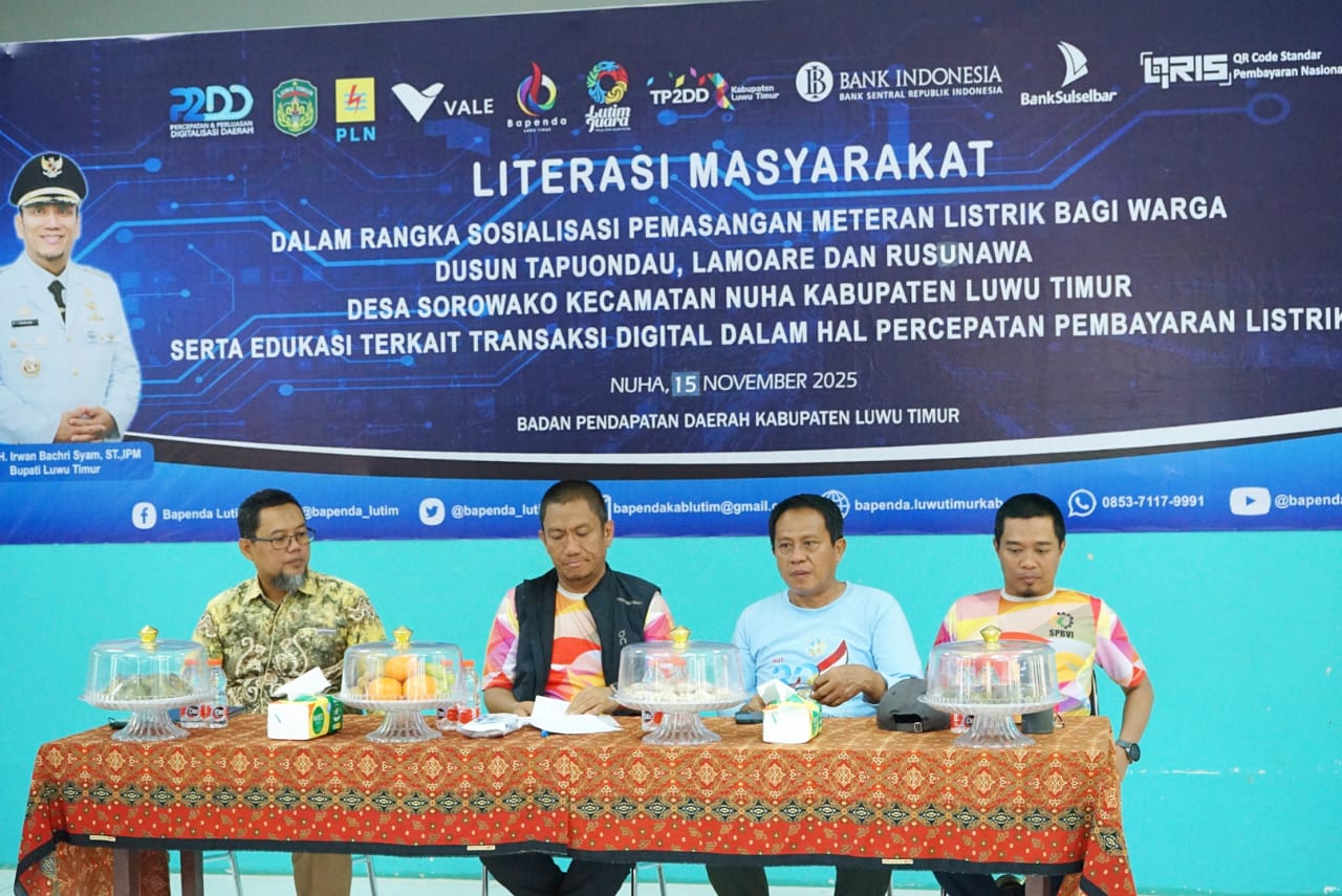 Lutim,warta.luwutimurkab.go.id- ‎Bupati Luwu Timur, Irwan Bachri Syam, menghadiri sosialisasi pemasangan meteran listrik bagi warga Dusun Tapuondau, Lamoare, dan Rusunawa di Desa Sorowako, Kecamatan Nuha. Acara ini digelar di Matano Player, Sabtu (15/11/2025).