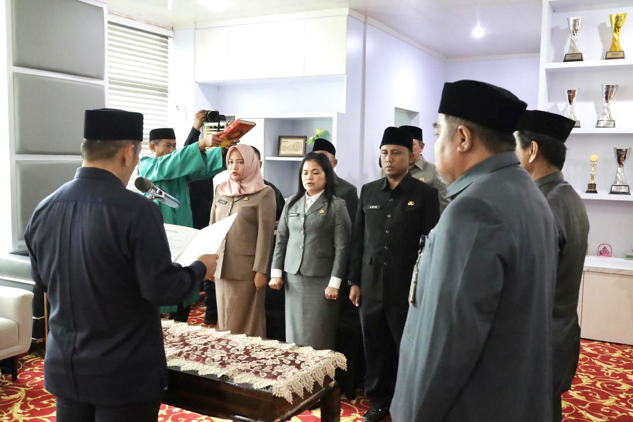 Kegiatan tersebut berlangsung di Ruang Kerja Bupati Luwu Timur, Kamis (27/11/2025) yang berlangsung khidmat, diawali dengan pembacaan SK, kemudian pengambilan sumpah jabatan, dan dilanjutkan dengan penandatanganan berita acara sumpah jabatan.