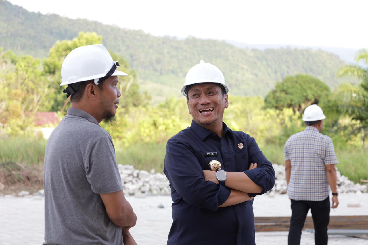 Bupati Irwan meninjau sejauh mana proses dari pembangunan Rumah Sakit ini dengan melihat dan bercengkrama langsung dengan pelaksana proyek.