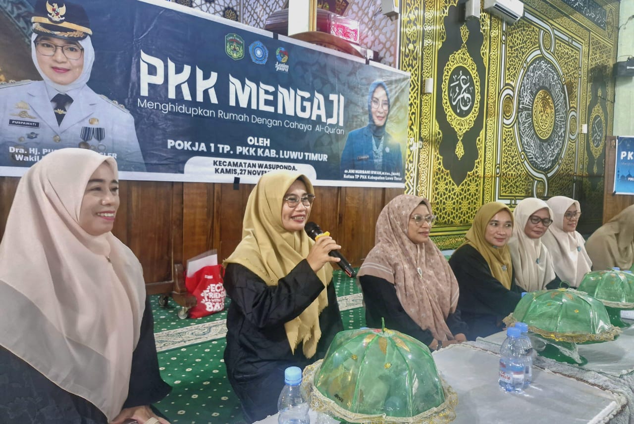 Lutim,warta.luwutimurkab.go.id – Pokja I Tim Penggerak PKK Kabupaten Luwu Timur menggelar kegiatan PKK mengaji di Masjid Jami AT Taqwa Kecamatan Wasuponda, Kamis (27/11/2025).