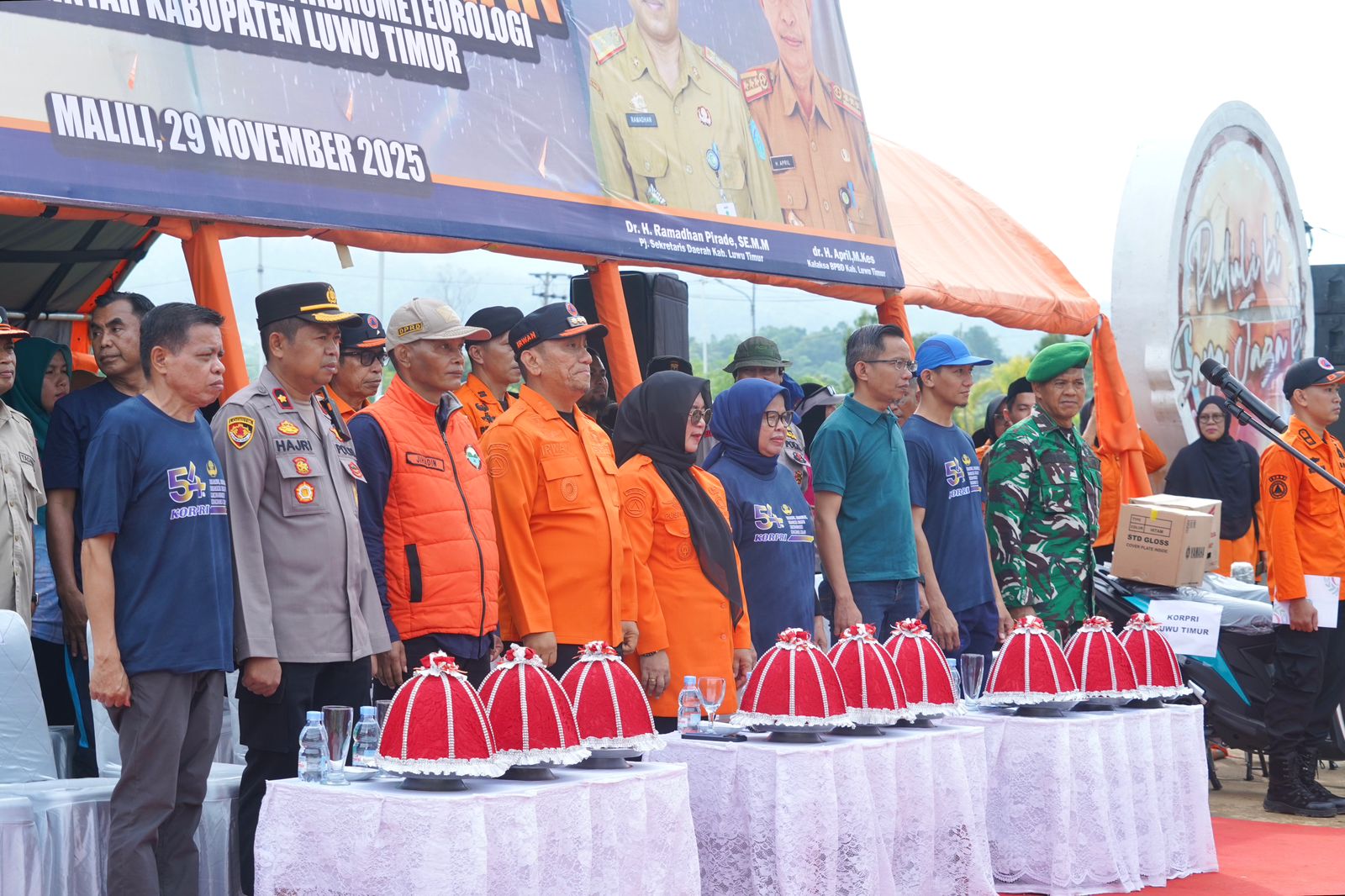 Turut hadir, unsur Forkopimda, Ketua Pengadilan Agama Malili, Balai Dalkarhut Wilayah Sulawesi, Danops Polairud Polda Sulsel, Danpos TNI Angkatan Laut, Pj. Sekda, para Kepala OPD, Ketua TP PKK Luwu Timur, para Camat, Korpos SAR Luwu Timur, Ketua PMI Luwu Timur, serta para relawan dan unsur dunia usaha. (asn/ikp-humas/kominfo-sp)