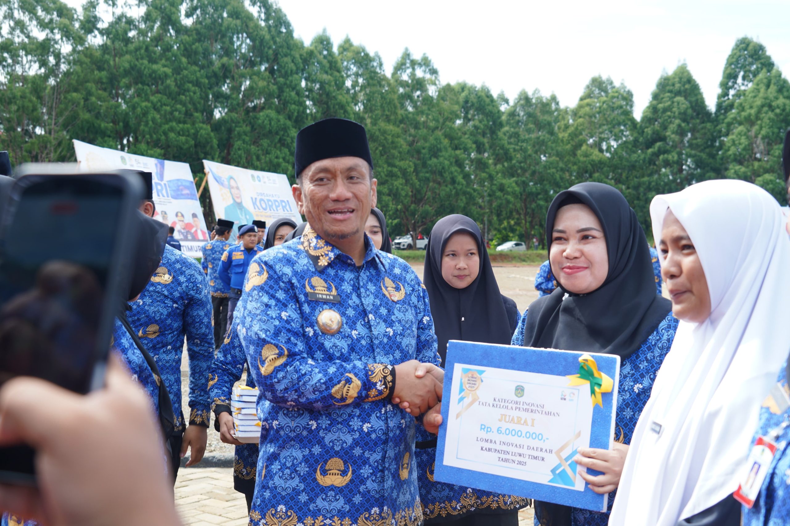 Lutim, warta.luwutimurkab.go.id- Bupati Luwu Timur, Irwan Bachri Syam bersama Wakil Bupati Puspawati Husler memimpin Upacara Peringatan Hari Ulang Tahun (HUT) ke-54 Korps Pegawai Republik Indonesia (KORPRI) Tahun 2025.