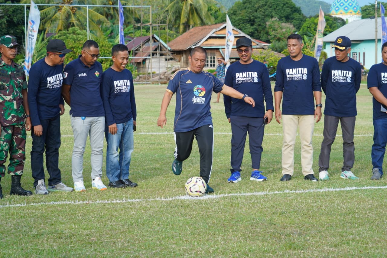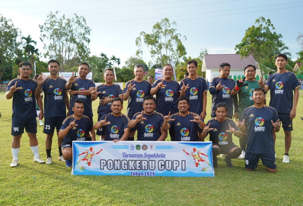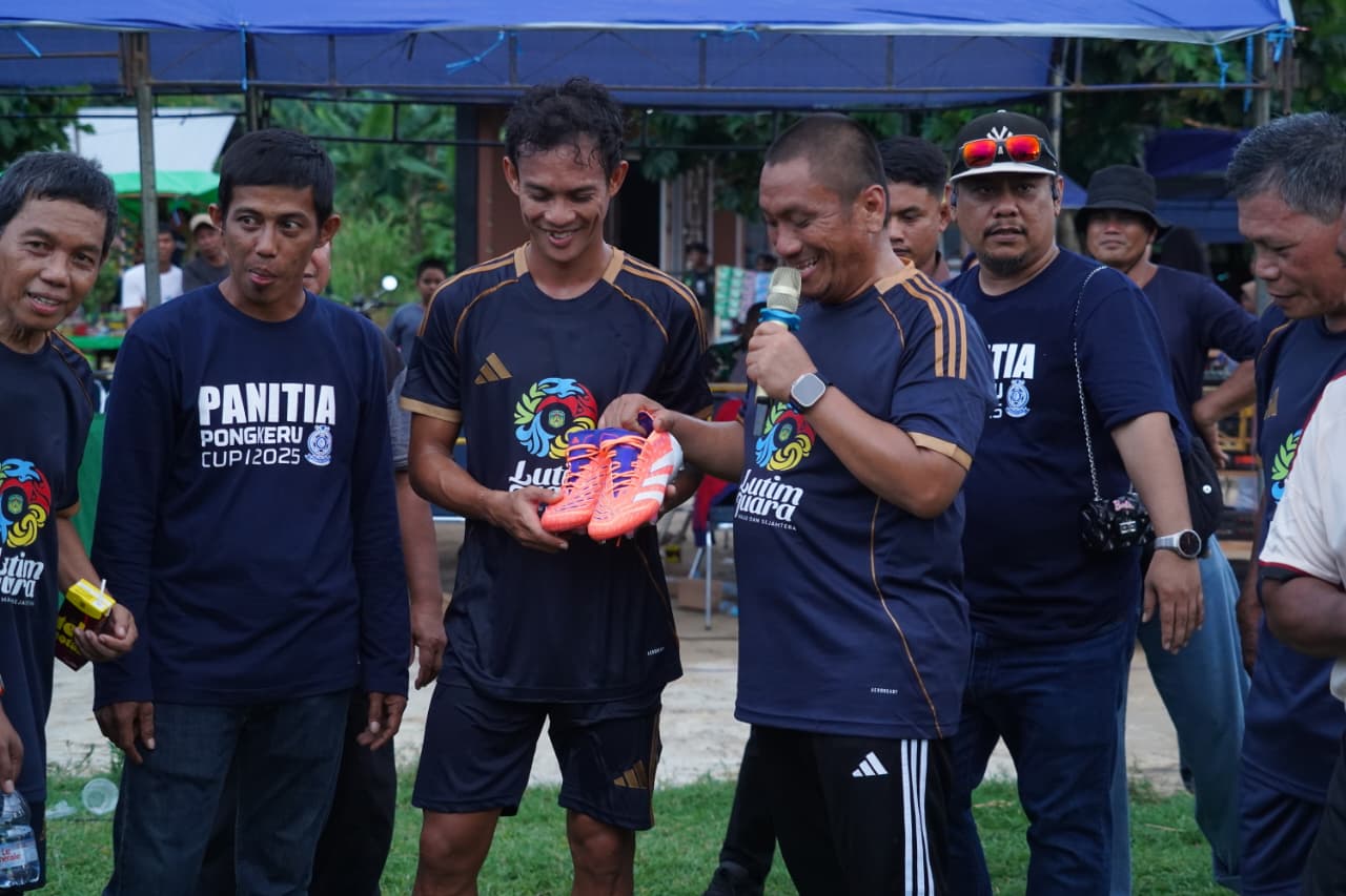 Lutim, warta.luwutimurkab.go.id- Menggunakan sepatu berwarna orange, Bupati Ibas tampak harus berlari maju mundur mengejar bola di dalam Lapangan Maesara Village Stadium, Desa Pongkeru, saat laga eksebisi pembukaan turnamen sepak bola Pongkeru Cup 1 yang mempertemukan Tim Pemerintah Kabupaten Luwu Timur (Pemkab Lutim) melawan D’Legend All Stars Senin, (01/12/2025).