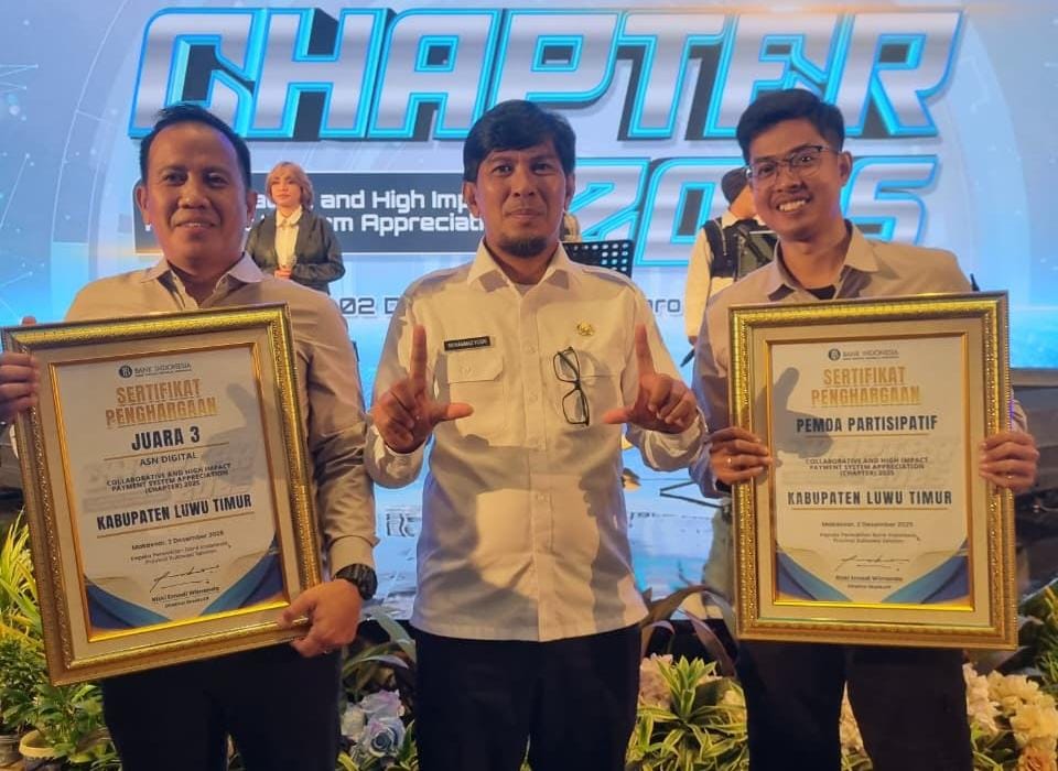 Dalam ajang bergengsi Collaborative and High Impact Payment System Appreciation (CHAPTER) 2025 dan ASN Digital Award, Pemerintah Kabupaten Luwu Timur sukses membawa pulang dua penghargaan sekaligus dari Bank Indonesia.