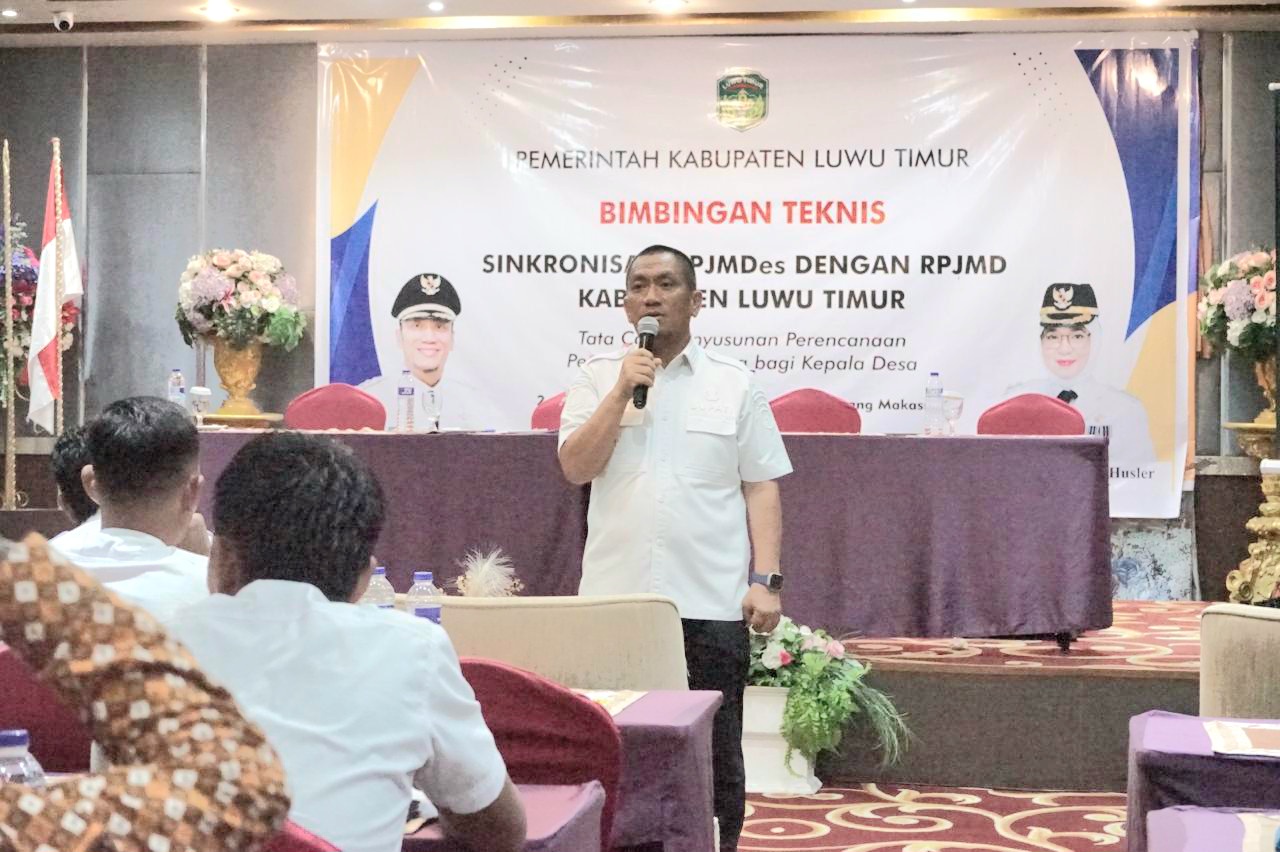 Lutim, warta.luwutimurkab.go.id- Bupati Luwu Timur, Irwan Bachri Syam membuka acara Bimbingan Teknis (Bimtek) Sinkronisasi RPJMDes dengan RPJMD Kabupaten Luwu Timur, yang berlangsung di Hotel Remcy, Kecamatan Panakkukang, Kota Makassar, Rabu, (3/12/2025).