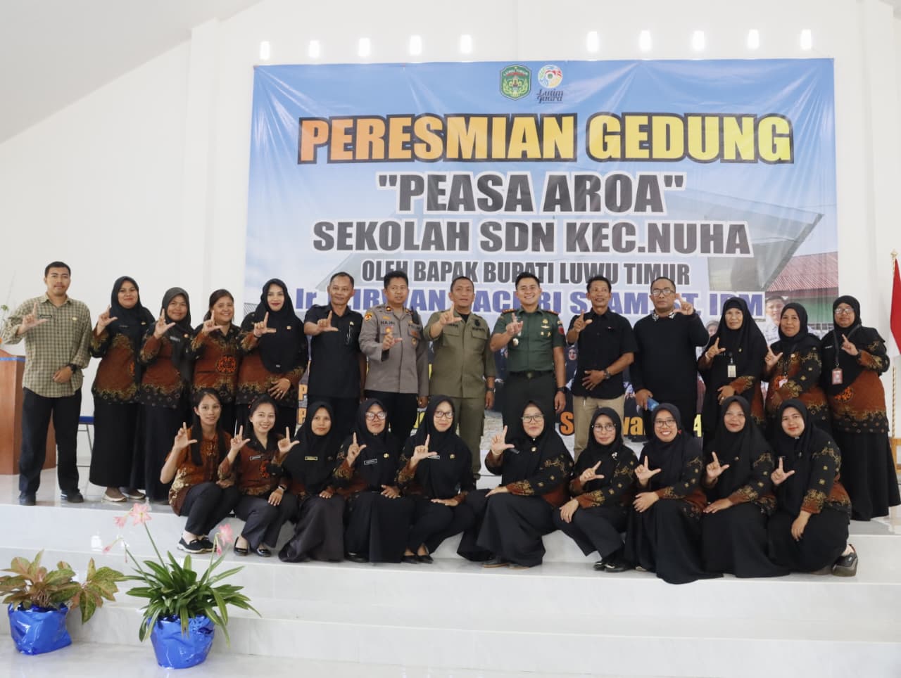 Lutim,warta.luwutimurkab.go.id- Bupati Luwu Timur, Irwan Bachri Syam meresmikan Gedung Peasa Aroa, merupakan fasilitas bersama yang akan digunakan oleh tiga sekolah, yakni UPT SDN 247 Sorowako, UPT SDN 252 Nikkel, dan UPT 256 Dongi, di Kecamatan Nuha, Kamis (04/12/2025).