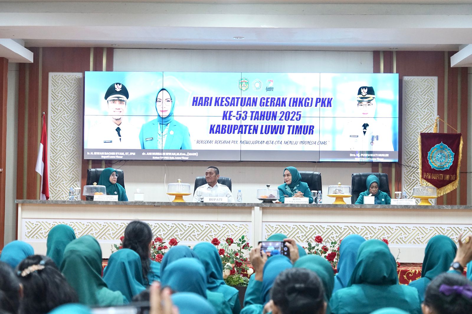 Lutim,warta.luwutimurkab.go.id – Peringatan Hari Kesatuan Gerak (HKG) PKK ke-53 Tingkat Kabupaten Luwu Timur digelar sebagai momentum penting untuk memperkuat semangat kebersamaan, kreativitas, serta peran strategis PKK dalam mendukung pembangunan daerah.