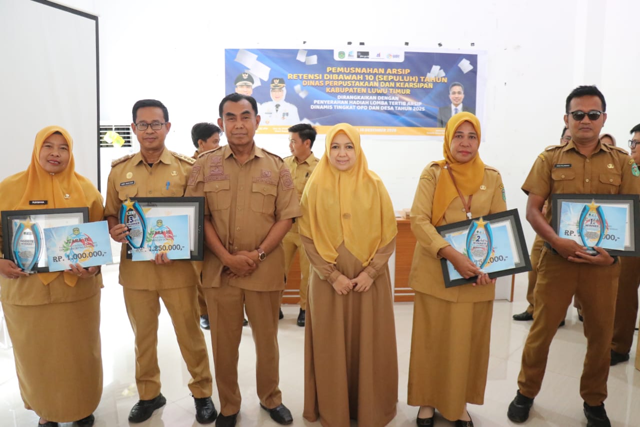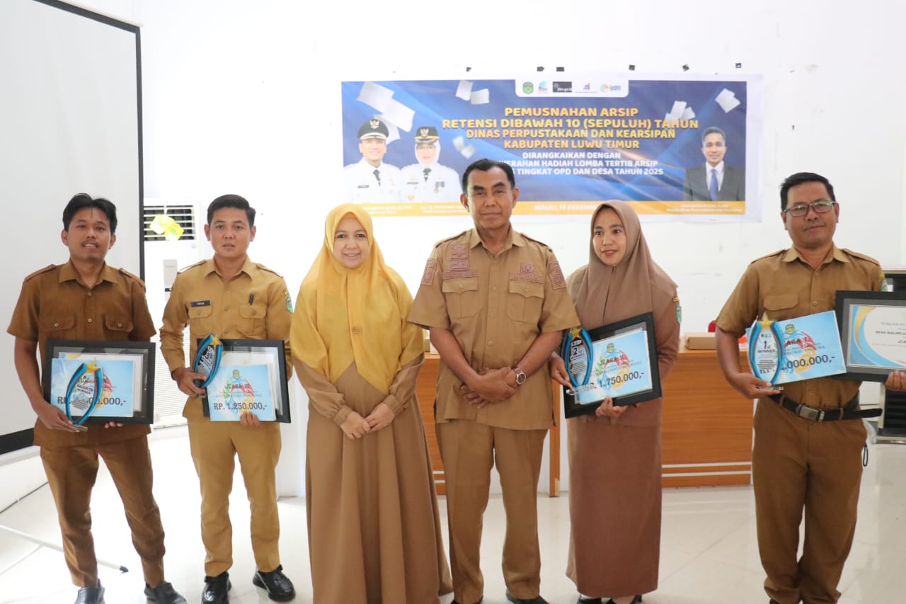 Lutim,warta.luwutimurkab.go.id – Dinas Perpustakaan dan Kearsipan (DPK) Kabupaten Luwu Timur menggelar kegiatan pemusnahan arsip retensi di bawah 10 tahun, yang dirangkai dengan penyerahan hadiah Lomba Tertib Arsip Dinamis tingkat OPD dan desa tahun 2025.