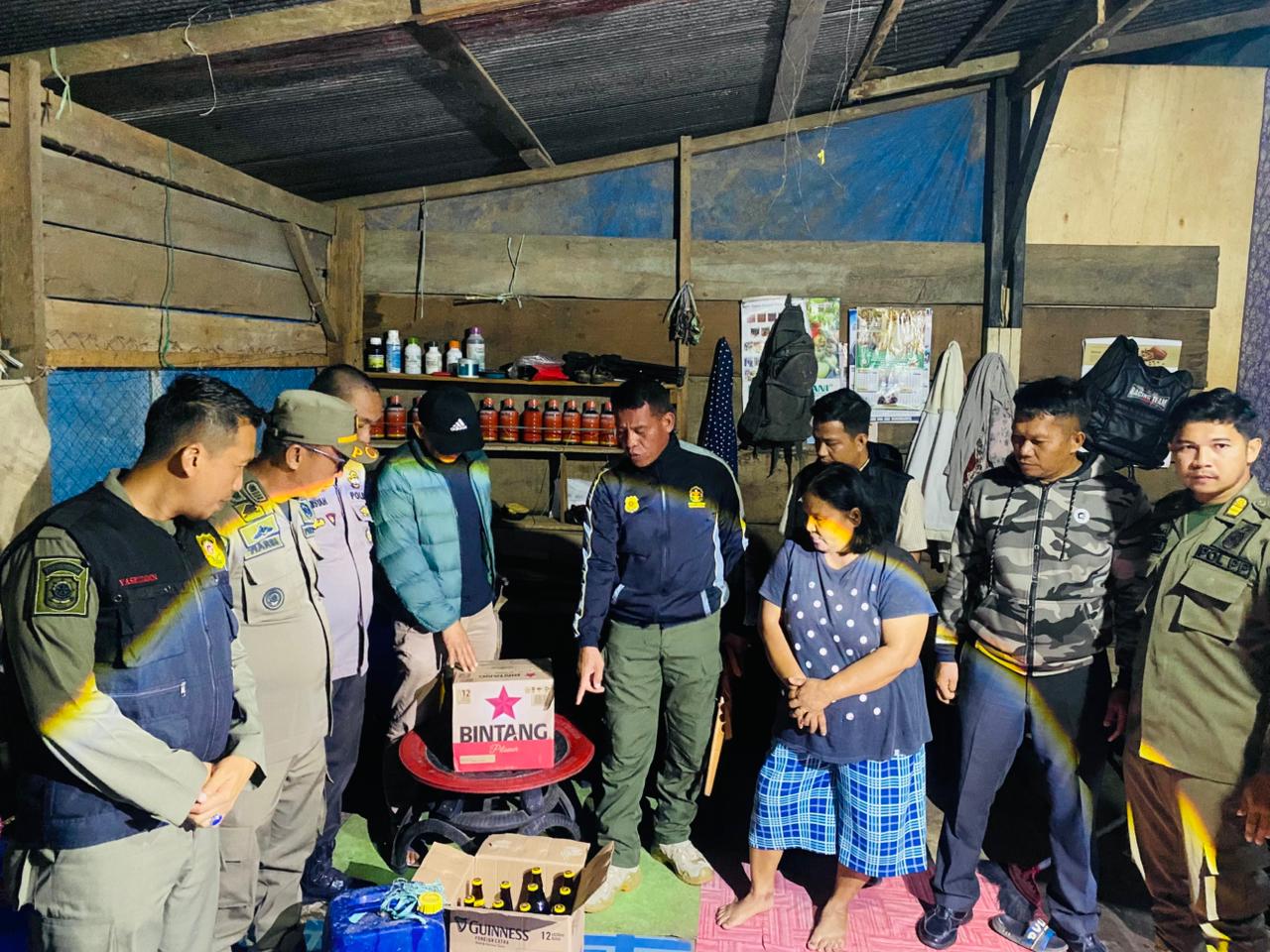 Dalam operasi gabungan tersebut, petugas berhasil mengamankan puluhan botol minuman beralkohol dari berbagai merek yang dijual tanpa izin.