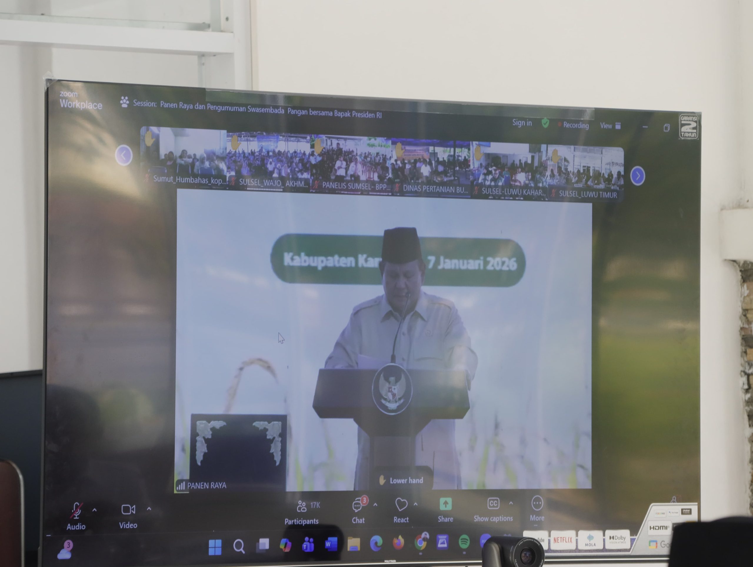 Lutim, warta.luwutimurkab.go.id – Wakil Bupati Luwu Timur, Hj. Puspawati Husler menghadiri Panen Raya dan Pengumuman Swasembada Pangan secara virtual yang berlangsung di Aula Dinas Pertanian dan Ketahanan Pangan (DISPKP), Rabu (07/01/2026).