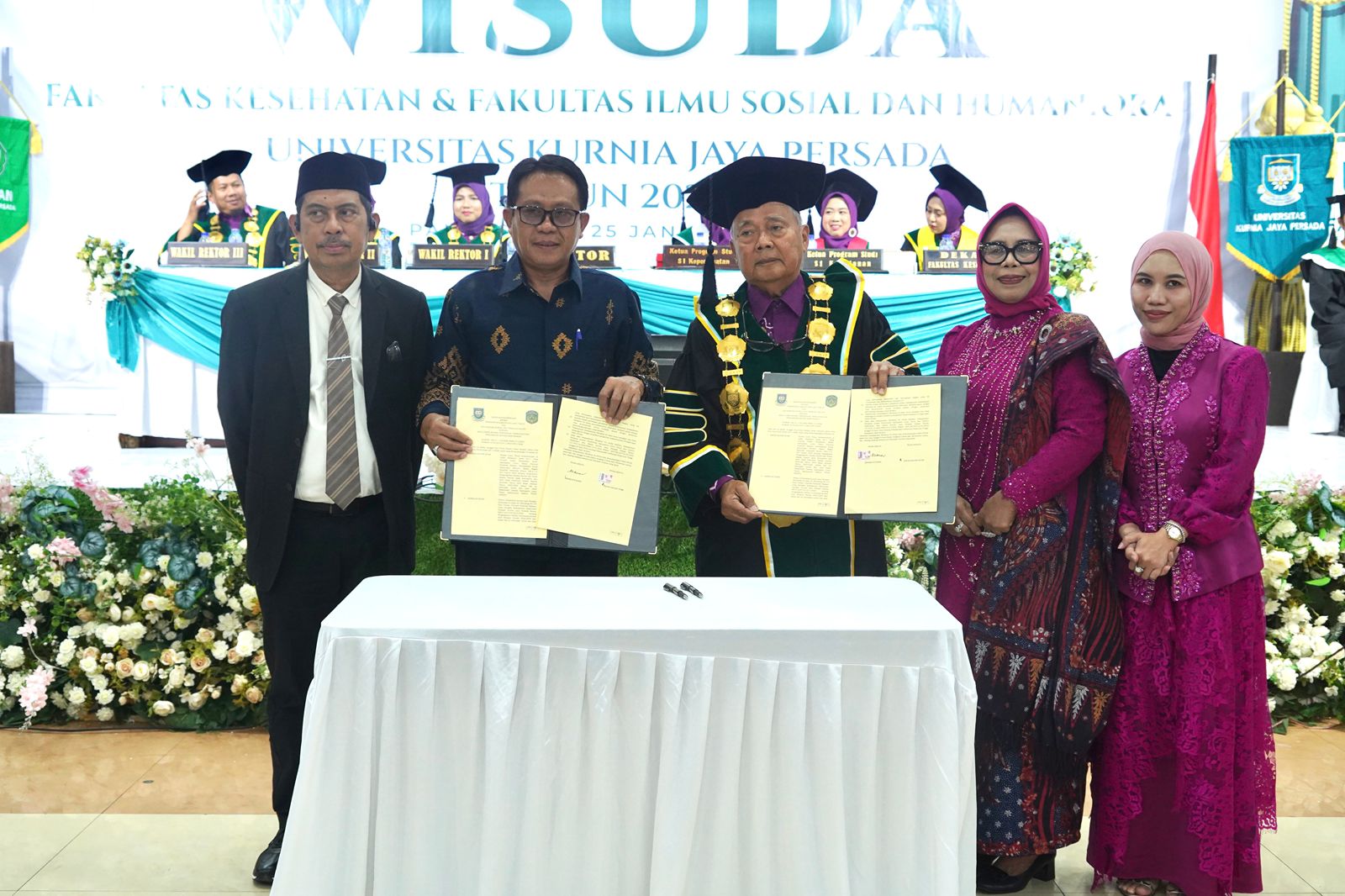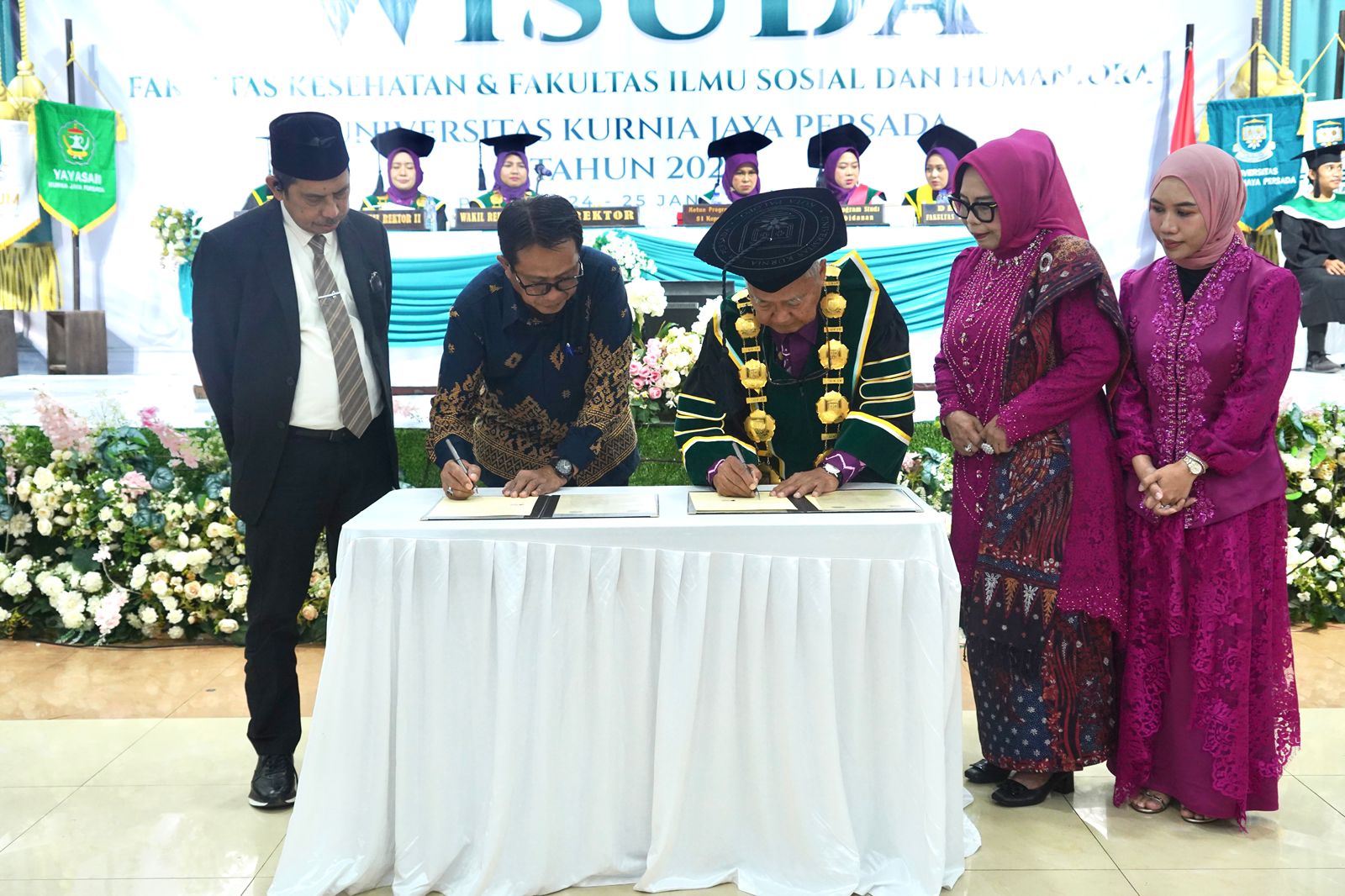 Penandatanganan tersebut dilakukan oleh Bupati Luwu Timur diwakili Pj. Sekretaris Daerah, Dr. Ramadhan Pirade bersama Rektor Universitas KJP, Prof. drg. Mansjur Nasir, Ph.D, Sp. Ort., yang dilaksanakan dalam rangkaian Sidang Senat Terbuka Wisuda Fakultas Kesehatan serta Fakultas Ilmu Sosial dan Humaniora Universitas Kurnia Jaya Persada, di Aula UKJP, Kota Palopo, Sabtu (24/01/2026).