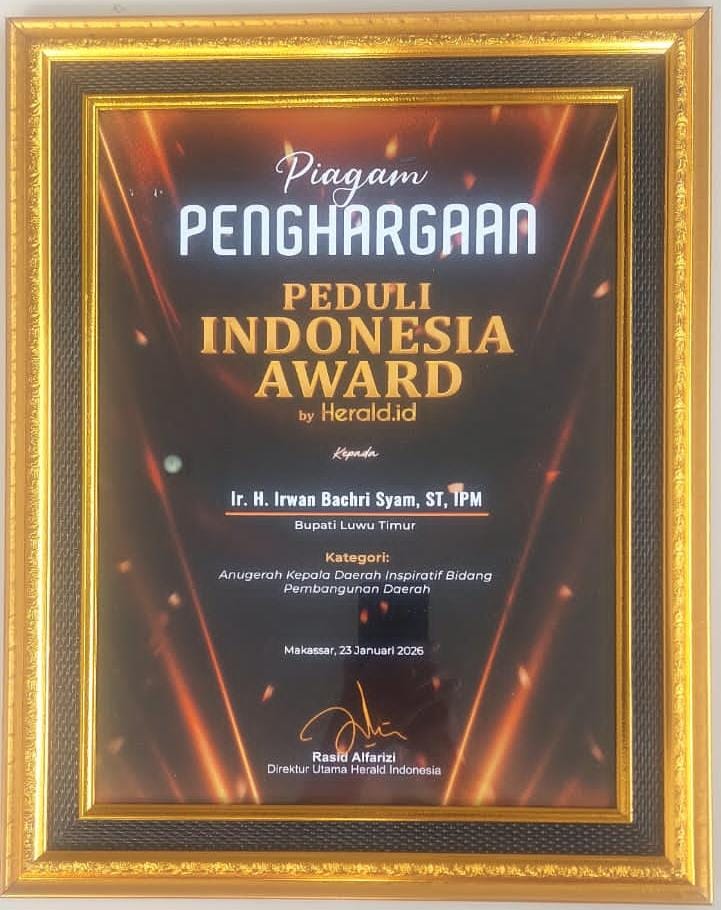 Penghargaan Herald Awards 2025 ini menjadi pengakuan atas komitmen dan kepemimpinan Irwan Bachri Syam dalam menghadirkan pembangunan yang tidak hanya cepat, tetapi juga inklusif dan berkelanjutan bagi Kabupaten Luwu Timur.