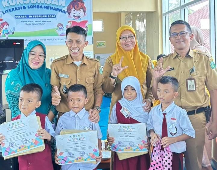 Lutim,warta.luwutimurkab.go.id- Perpustakaan Lentera Ilmu Desa Manurung bekerja sama dengan Mahasiswa KKNT Universitas Cokroaminoto Palopo Periode I Tahun 2026 menggelar kegiatan kunjungan literasi dan lomba mewarnai di Gedung Perpustakaan Lentera Ilmu Desa Manurung, Kecamatan Malili, Selasa (10/02/2026).