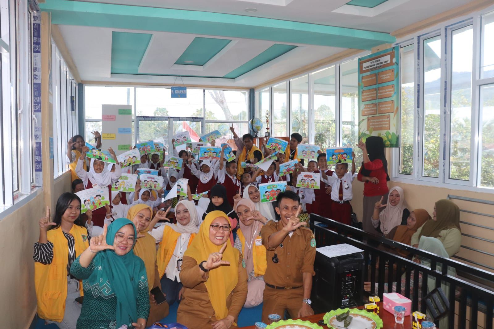 Kunjungan ini bertujuan membangun semangat siswa sekolah dasar dalam mengembangkan kreativitas dan kemampuan motorik melalui lomba mewarnai, sekaligus menghapus kesan bahwa perpustakaan merupakan tempat yang kaku, sunyi, dan membosankan.