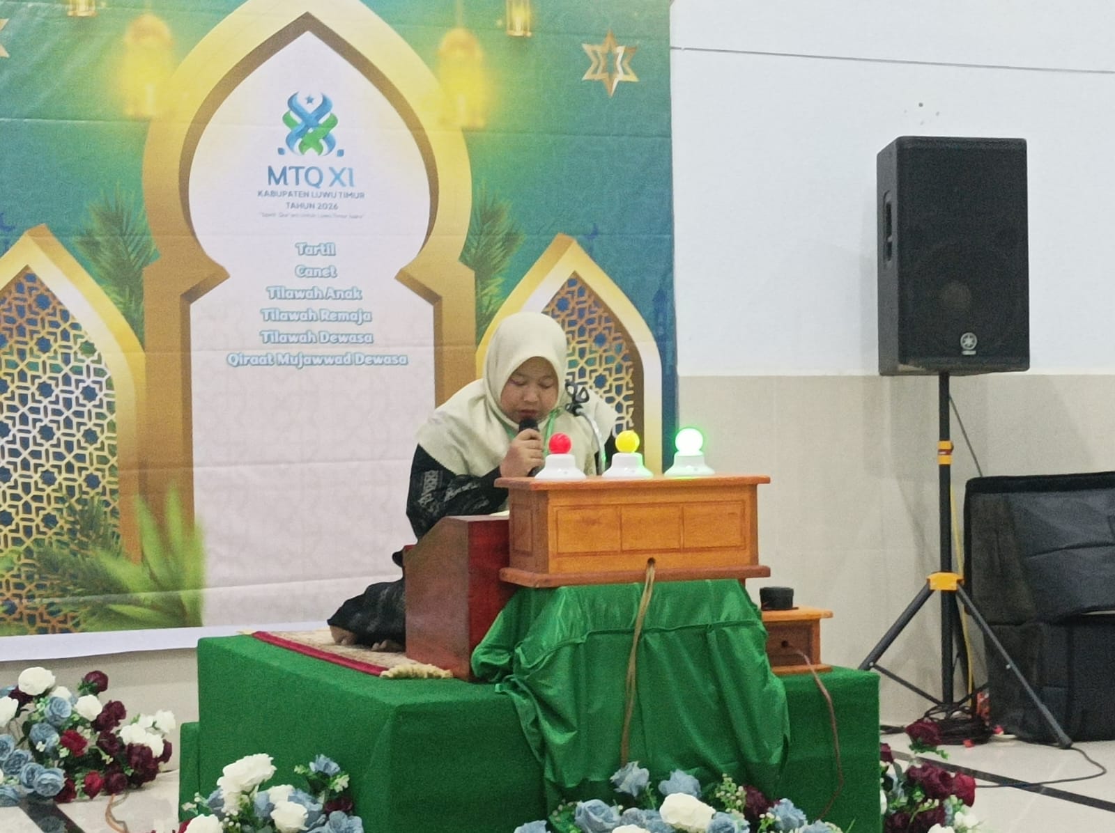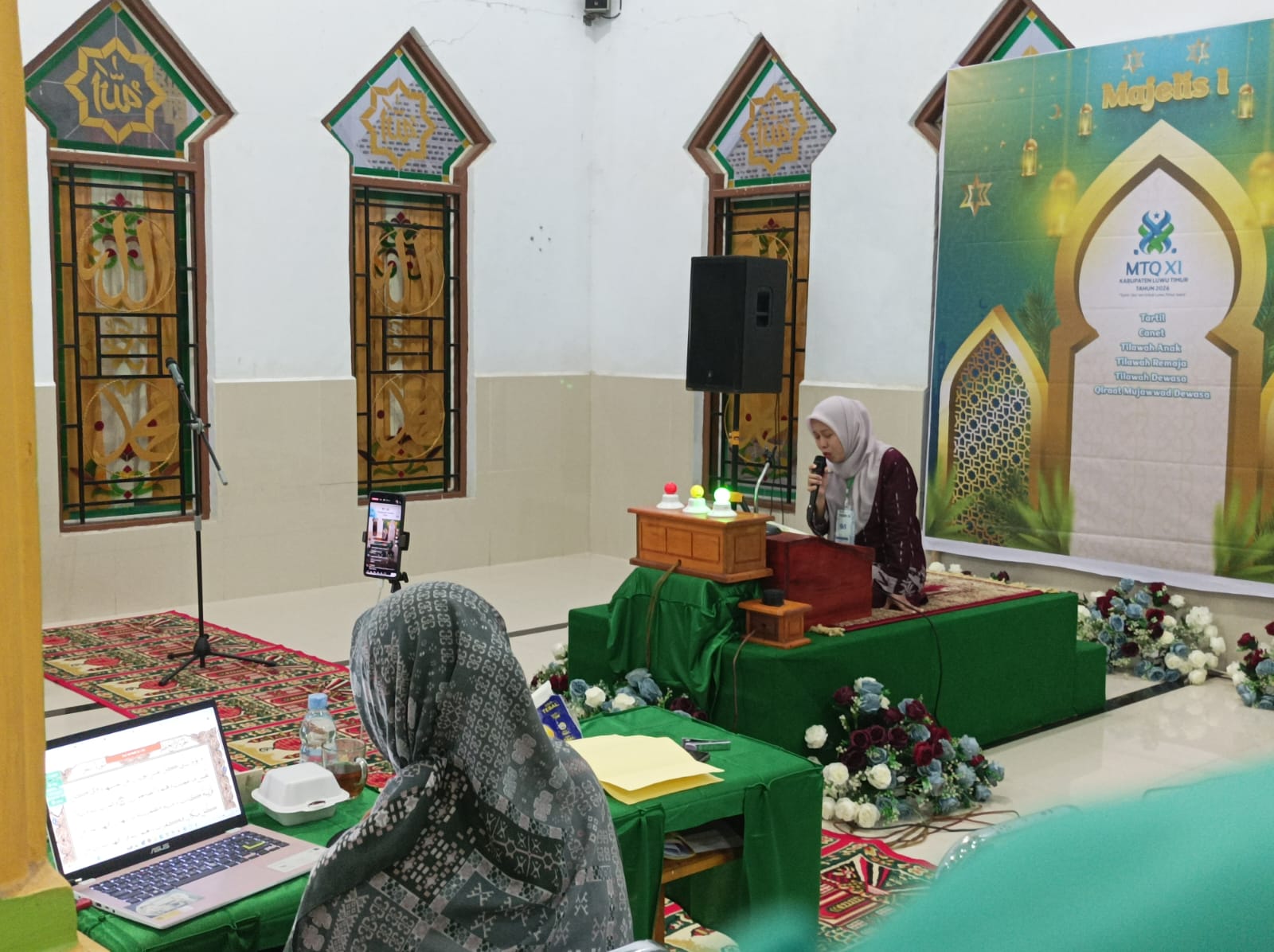 Lutim,warta.luwutimurkab.go.id – Cabang Seni Baca Al-Qur’an golongan Qira’at Mujawwad Dewasa Putri pada Majelis 1 dalam rangka Musabaqah Tilawatil Qur’an (MTQ) XI Tingkat Kabupaten Luwu Timur Tahun 2026 berlangsung khidmat dan penuh kekhusyukan. Kegiatan ini digelar di Masjid At-Taqwa, Desa Margomulyo, Kecamatan Tomoni Timur, pada Rabu malam, 11 Februari 2026.