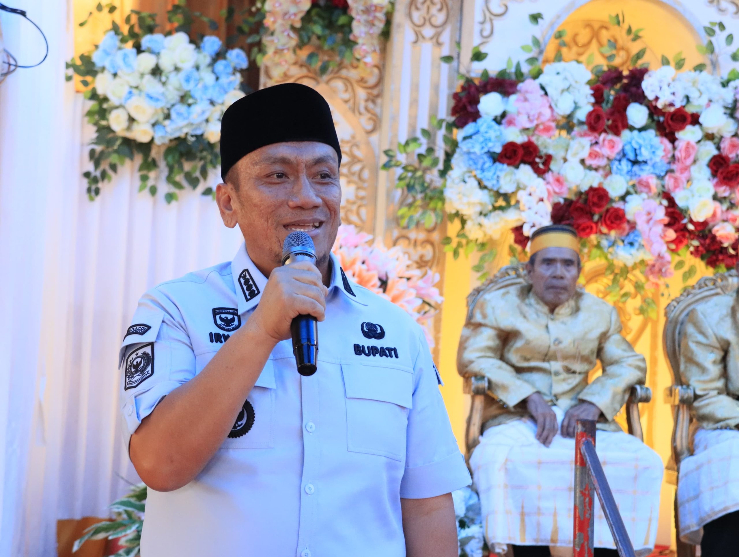 Selain melakukan kunjungan kerja Bupati Irwan juga menghadiri undangan hajatan warga yang ada di Dusun T. Mincarae, Desa Loeha, sebagai bentuk silahturahmi dengan masyarakat.